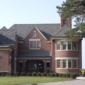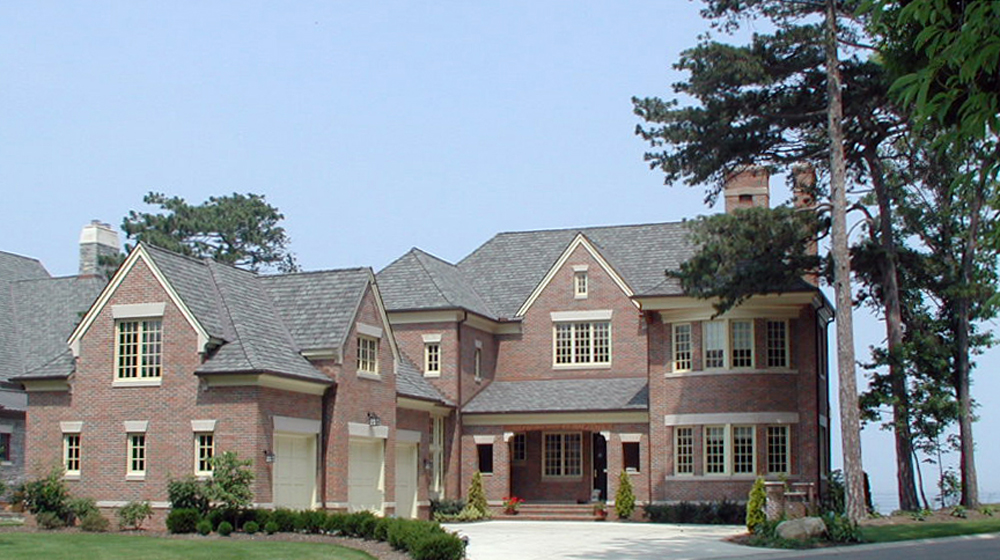 This brick, stone and shingle home is one of four adjacent residences built on a bluff overlooking Lake Erie. Each, in their own way