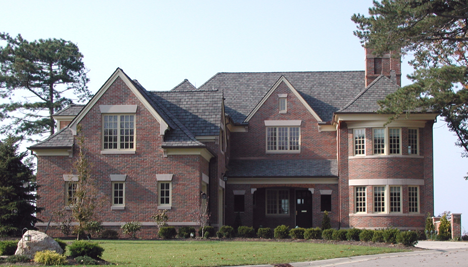 This brick, stone and shingle home is one of four adjacent residences built on a bluff overlooking Lake Erie. Each, in their own way