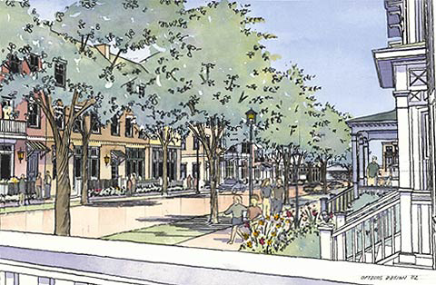 HISTORIC TOWN CENTERA view from one of the narrow single family porches towards the live-work units across the street in the Town Center.