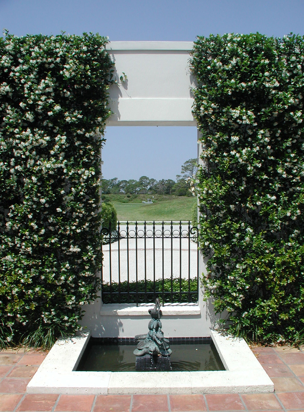 This house draws upon the tradition of Mizner's Spanish influenced Palm Beach Style. The principle spaces of the home unfold through the center of the house with ancillary wings providing privacy from the neighbors. In this asymmetrical composition the two story entrance mass balances the projecting pavilion of the garage.