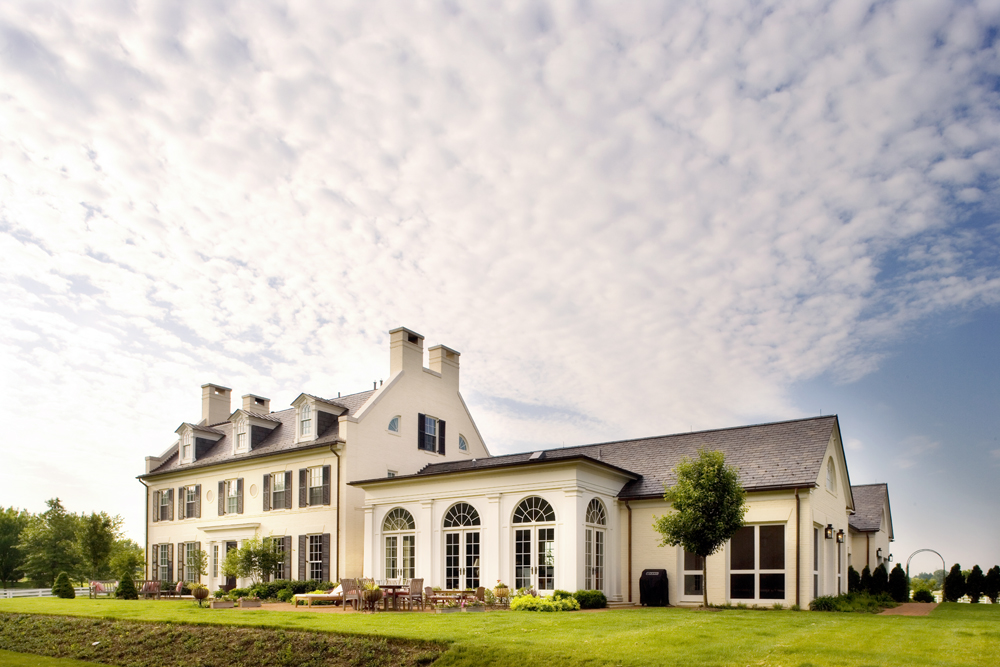 This home located in The Farms area of New Albany uses the Georgian vocabulary to adapt a center hall plan beyond the confines of earlier historical interpretations. The main mass of the house encloses the owner's personal living spaces on the upper levels, tucking children's bedrooms, bathes and playroom into the dormered third floor gambrel roof. A cross axis on the ground floor expands the plan to incorporate an informal living area with adjacent kitchen and screened porch looking out to a planned pool area beyond. Additional guest rooms are reached in this side wing by way of a secondary entrance and private stair.