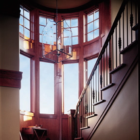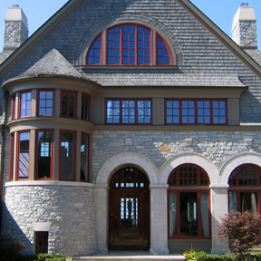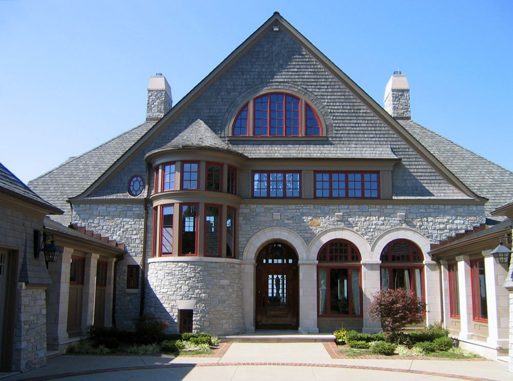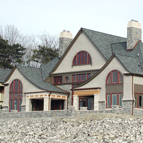 This brick, stone and shingle home is one of four adjacent residences built on a bluff overlooking Lake Erie. Each in their own way,