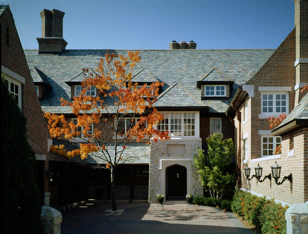 Sited on 15 acres of an existing estate in Mount Air, Ohio, the entry to this residential community is organized around a stone gatehouse and pond. The narrow streets within are lined with walled gardens.