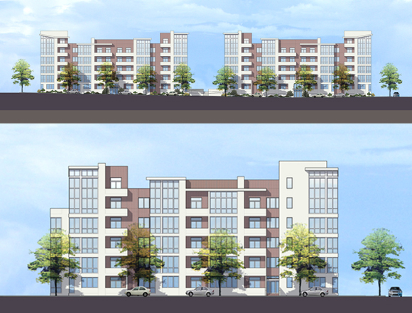 A five story podium building consisting of two ?L? shaped structures on top of a shared two and a half level parking garage with 207 spaces. Master Plan by DPZ. |