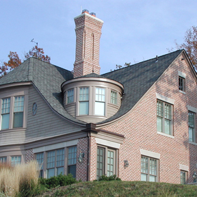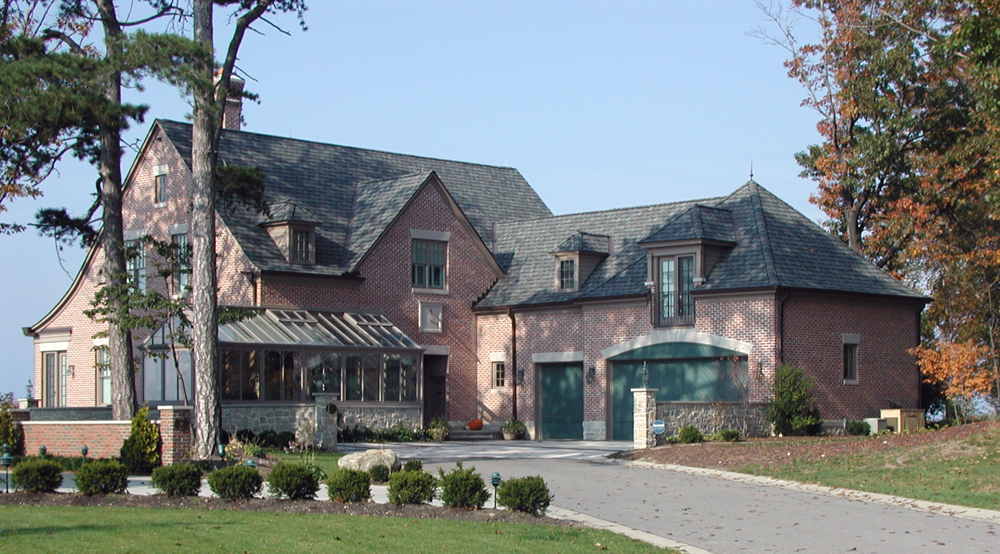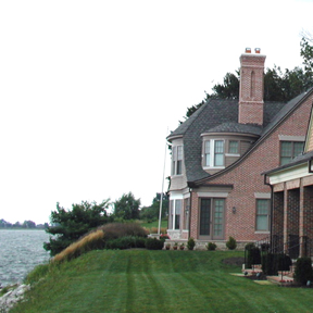 This brick, stone and shingle home is one of four adjacent residences built on a bluff overlooking Lake Erie. Each, in their own way