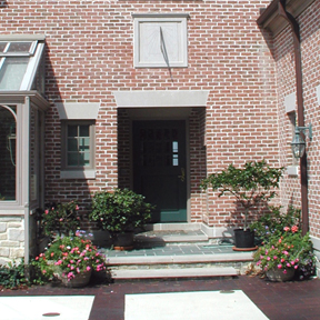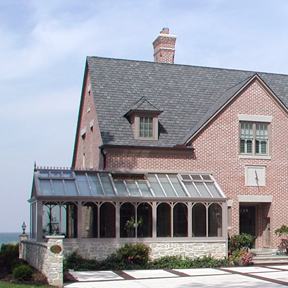 In this home, the motor court is enhanced with an Amdega greenhouse that houses the clients orchid collection. The extensive woodwork
