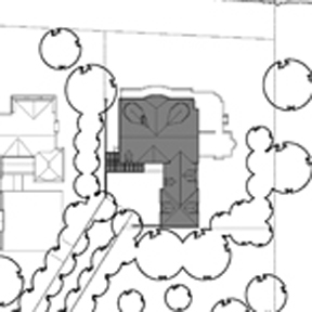scale. The large two storey bow balanced on either side with round sitting rooms tucked into the roof valleys, presents a graceful